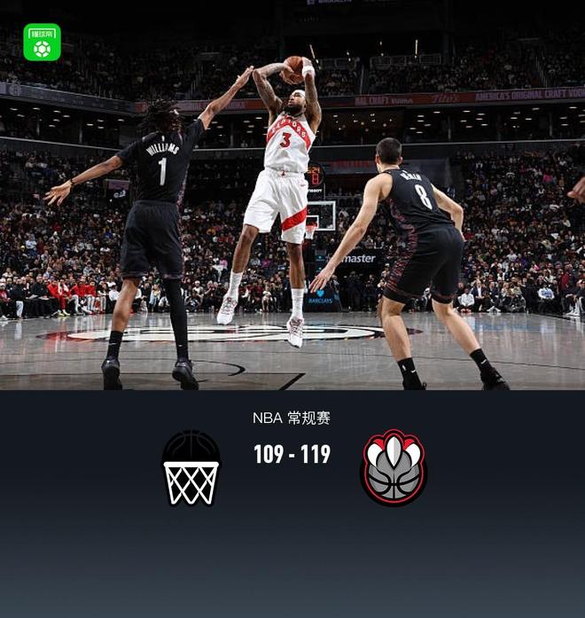 第四节篮网杰伦-威尔逊拿下6分,猛龙奎克利拿下12分,最终篮网109-119不敌猛龙