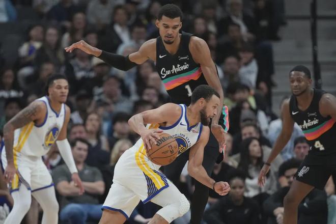 你不会意外库里的超远和撤步三分,也相信他反复借掩护从缝隙中找到三分空间的能力。他能军训文班,最简单的办法是有无球的单挡掩护抬手就扔。马刺这两场追防库里的无球掩护都赔上过三分犯规,这是他出手自信的奖励。但三分不能解决全部问题,库里也从来不只靠三分吃饭。马刺会夹击他,他不能把这类回合完全交给顺下处理4打3的队友——有时候,库里自己硬打还要好过队友4打3。